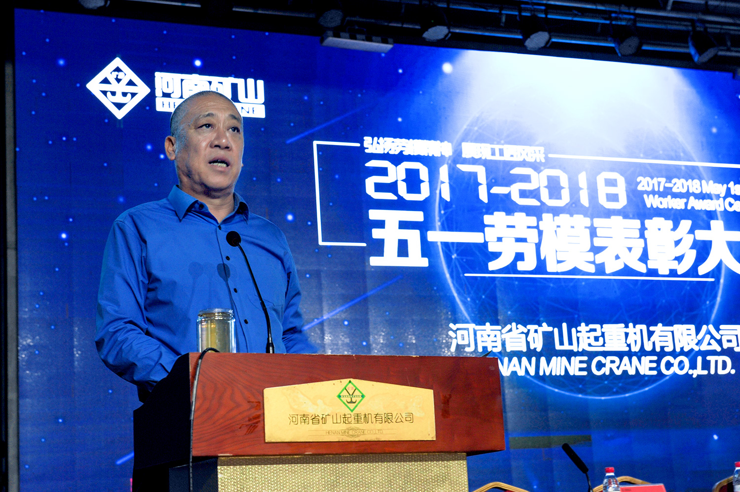 公司創(chuàng)始人、黨委書記崔培軍發(fā)表重要講話。他首先向全體員工致以節(jié)日的問候,向獲獎勞模表示祝賀!感謝大家為公司所做出的努力與貢獻(xiàn)。他就勞模精神、工匠精神、質(zhì)量比武、生產(chǎn)工期、素質(zhì)素養(yǎng)五個方面提出希望和要求。希望在勞模精神的鼓舞下,全體員工要抓緊生產(chǎn),服務(wù)客戶。繼續(xù)深化質(zhì)量月活動。立足本職崗位,再創(chuàng)新的佳績。踐行工匠精神,以更高標(biāo)準(zhǔn)嚴(yán)格要求自己。團結(jié)一心,眾志成城,努力將河南礦山打造成為一個享有盛譽、具有活力、追求卓越的**起重企業(yè)。