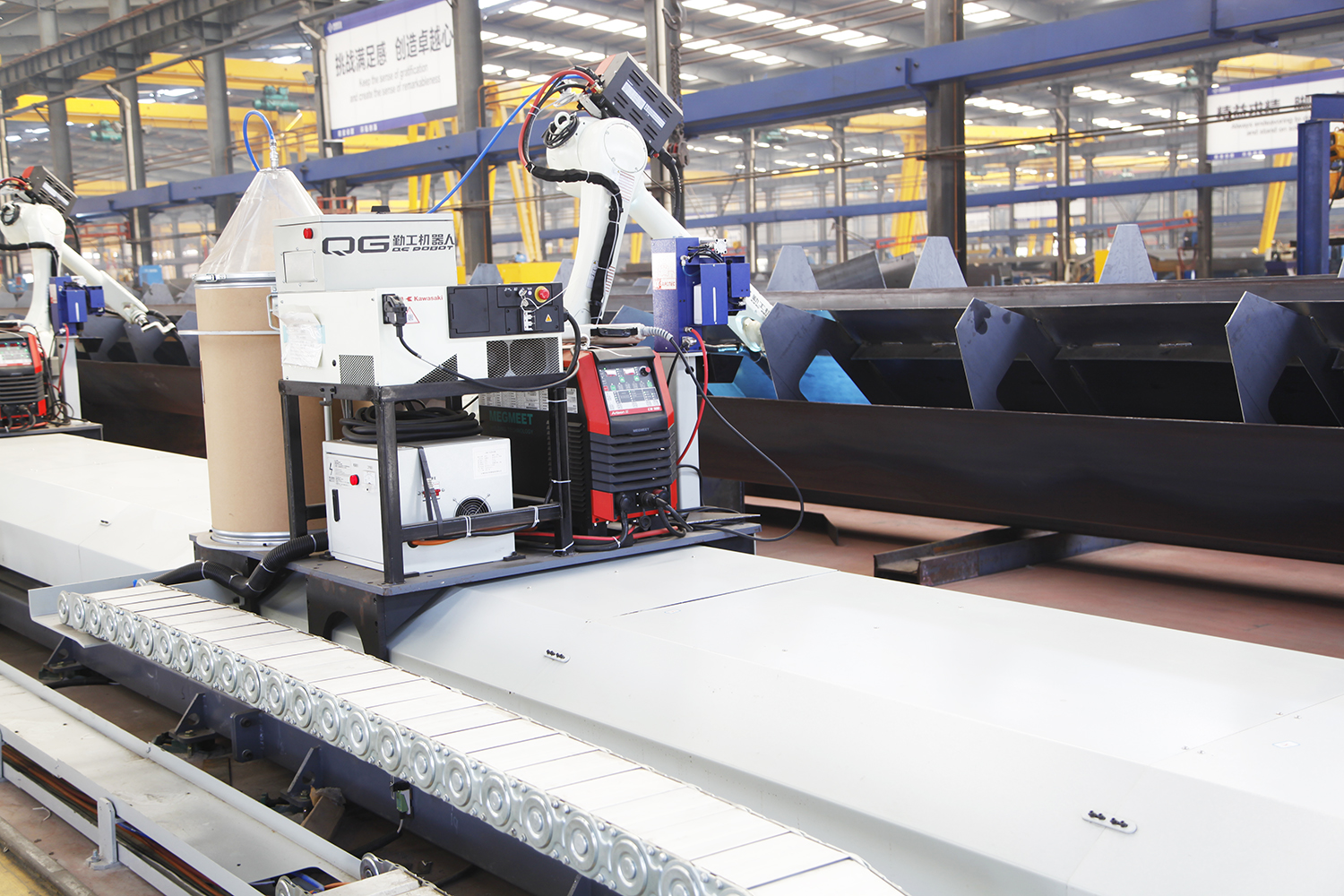 所以,我們列裝了一系列的焊接機(jī)器人,包括目前這條正在運(yùn)行的單梁起重機(jī)主梁內(nèi)縫機(jī)器人焊接流水線(xiàn)